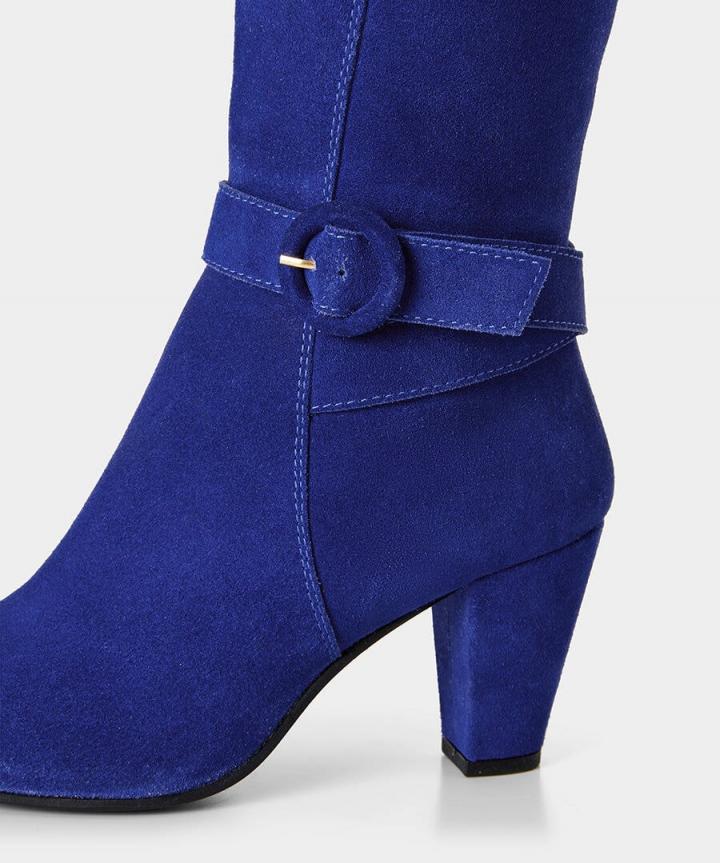 In a striking blue colour, these stunning suede boots will instantly uplift an outfit. Of course, we added those extra details you expect from Joe Browns, with a retro strap and covered heel for the perfect finish. You’ll have so much fun styling these boots with jeans, dresses, skirts The choice is yours!Tall boots Made from suede Statement cobalt blue colourway Retro strap and covered buckle Covered block heel Simple zip fasteningHeel Height: 7.9 cmView Calf Widths & Leg Heights
