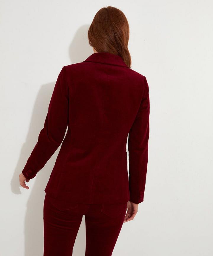 This double-breasted cord jacket is the most dreamy winter style. We updated the classic four-button design with a bold berry colourway so it’ll always make an impact. A fiery, feminine look you’ll love to have in your wardrobe, it goes with everything from blouses to dresses and even laid-back tees.Corduroy jacketSmart, double-breasted design Sophisticated collar Four front buttons Buttons at the cuffs Handy pocketsApprox. Length: 67cm